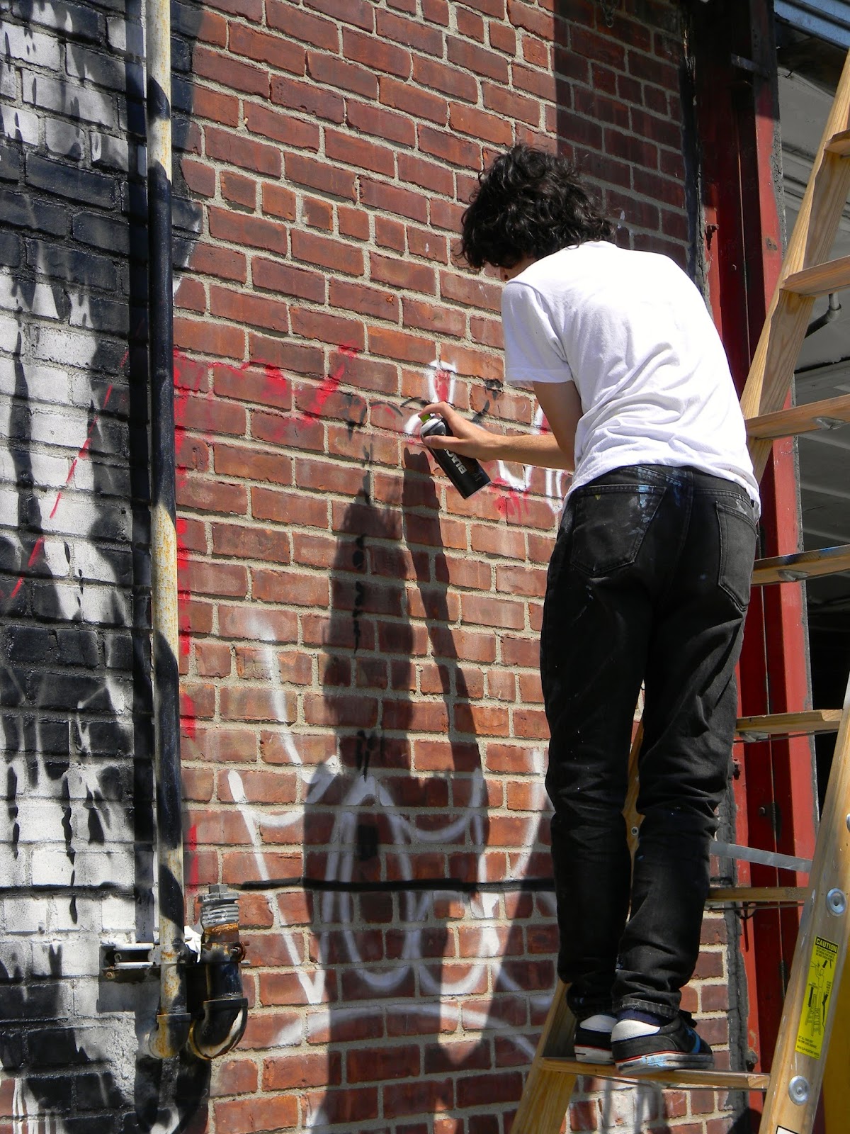 To the right, the elaborate sketch on the wall by graffiti veteran and legend Lady Pink...