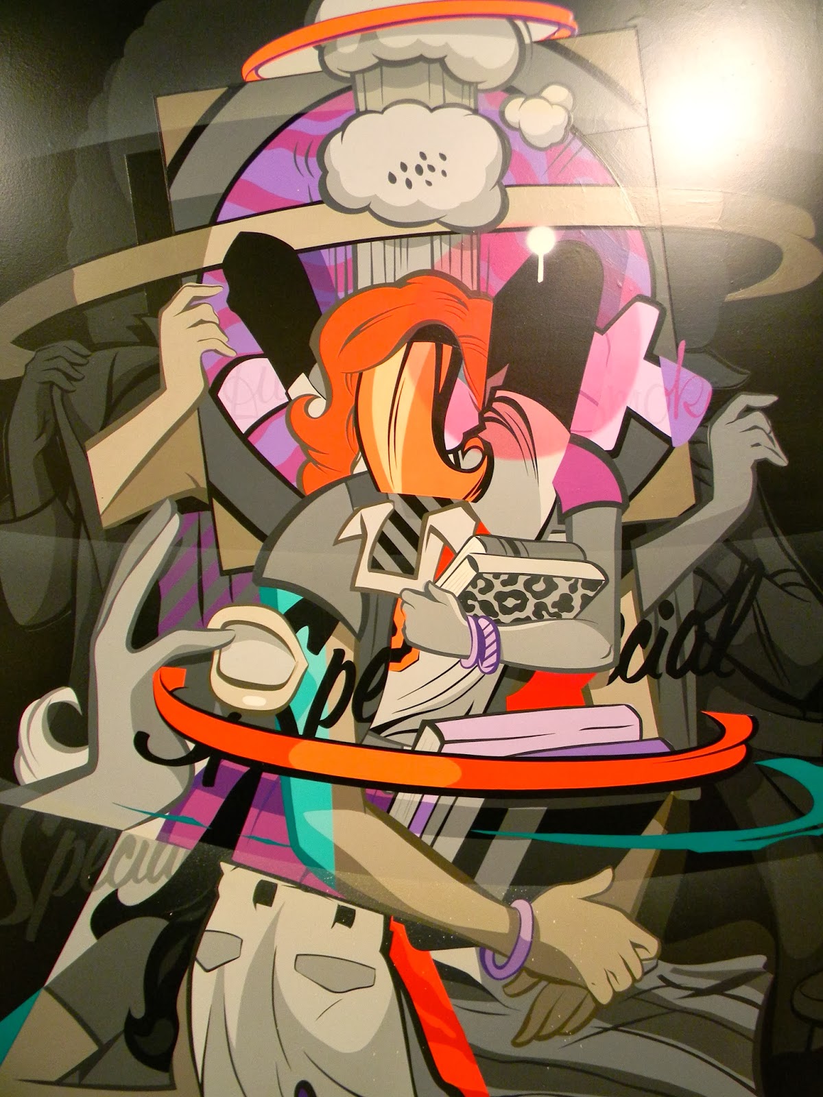 Do you remember last year's extremely detailed, brilliantly colorful mural wall at Houston/Bowery collaboration with fellow artist REVOK? It was beyond spectacular and probably one of the walls finest throughout history, (and no one tagged over it, that says a lot.) We are happy to see him back in NYC with new work and another stellar exhibit at the booth. Contact the gallery to purchase prints as well, the color and style is top notch as Pose takes great pride in color mixing on the originals, then represented into the prints.