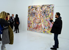 Instagram is everywhere.  More people will see this exhibition through it on peoples feeds or the gallery website than in person, so how much of these high-texture paintings will get communicated through those tubes? Furthermore those who do come to the gallery and engage with the paintings in person will be held at arms-length, in areas, by the intercession of peep-hole partitions. Some of the paintings people can stick their nose in and smell the wet oil paint and gratuitously eye-grope the glossy surfaces, while other paintings are coyly concealed.
